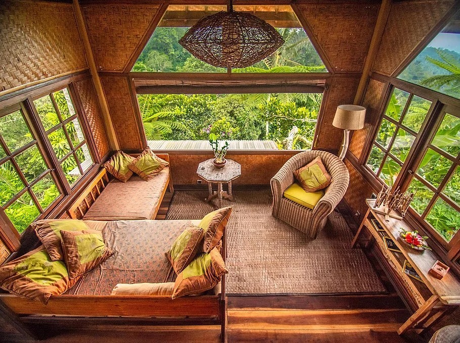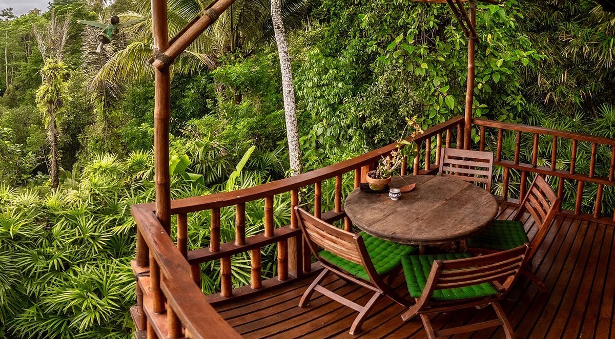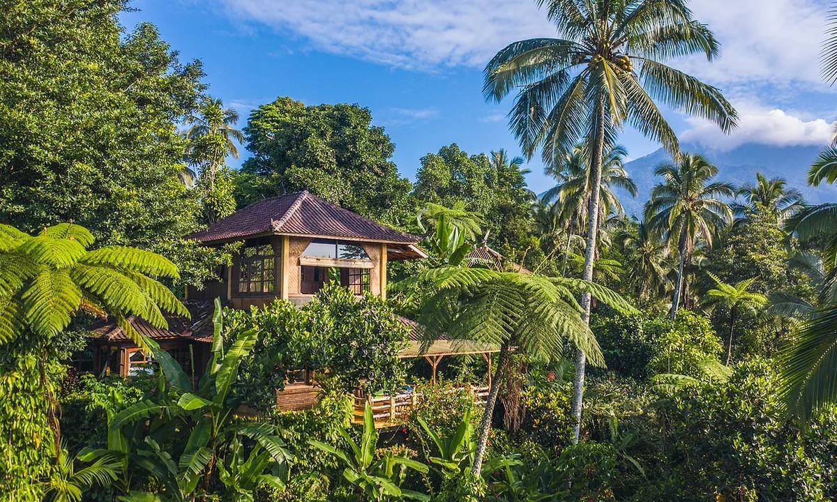 Le Sarinbuana Eco Lodge se situe à 700 mètres d'altitude sur les pentes reculées du volcan éteint de la forêt tropicale, le Mont Batukaru, dans le centre de Bali.