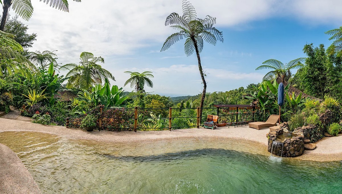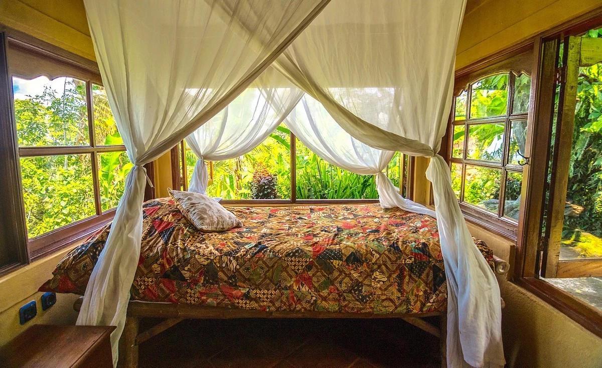 - Niché en pleine nature, réveillez vous au son des chants d'oiseaux et un superbe lever de soleil. Entouré de jardins tropicaux biologiques avec des vues spectaculaires sur la vallée boisée.