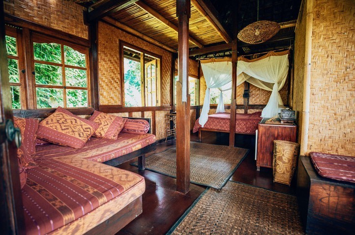 - Le Bungalow est décoré dans un style moderne asiatique avec des meubles fabriqués à la main localement en bambou et bois.