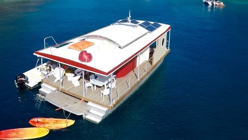 « Qui n’a pas rêvé d’être, pour un court instant, Robinson Crusoé ? Imaginez vous devant le coucher du soleil, au milieu d’un lagon, écoutant le bruit du vent et le clapot de l’eau d’un bleu turquoise éclatant... Vous êtes sur l’Aqua Lodge, une villa flottante entièrement équipée... »