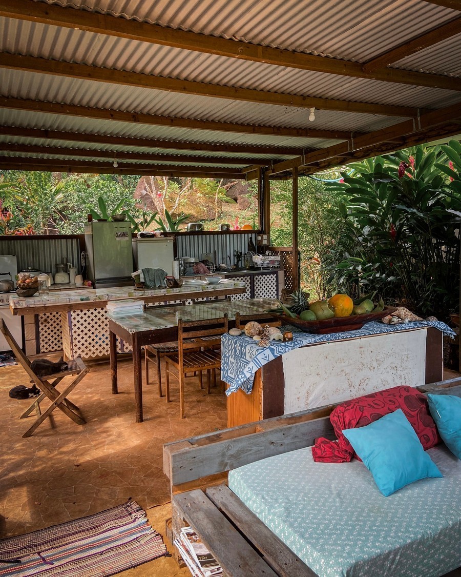 Le Niu Shack dispose d'une cuisine extérieure en tôles où vous pourrez déguster vos plats aux saveurs polynésiennes.