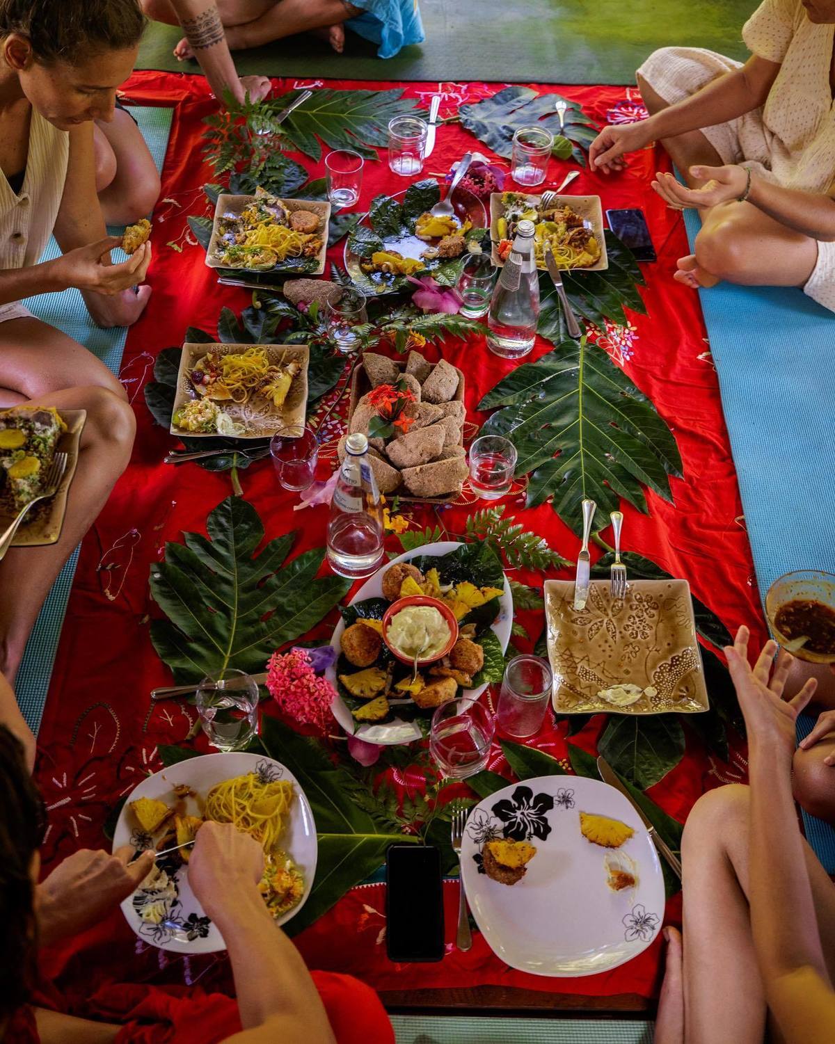 Dans la convivialité et le respect de l'environnement, Victorine Tihopu, maîtresse des lieux, vous concoctera des buffet 100% vegan avec des produits frais du domaine.