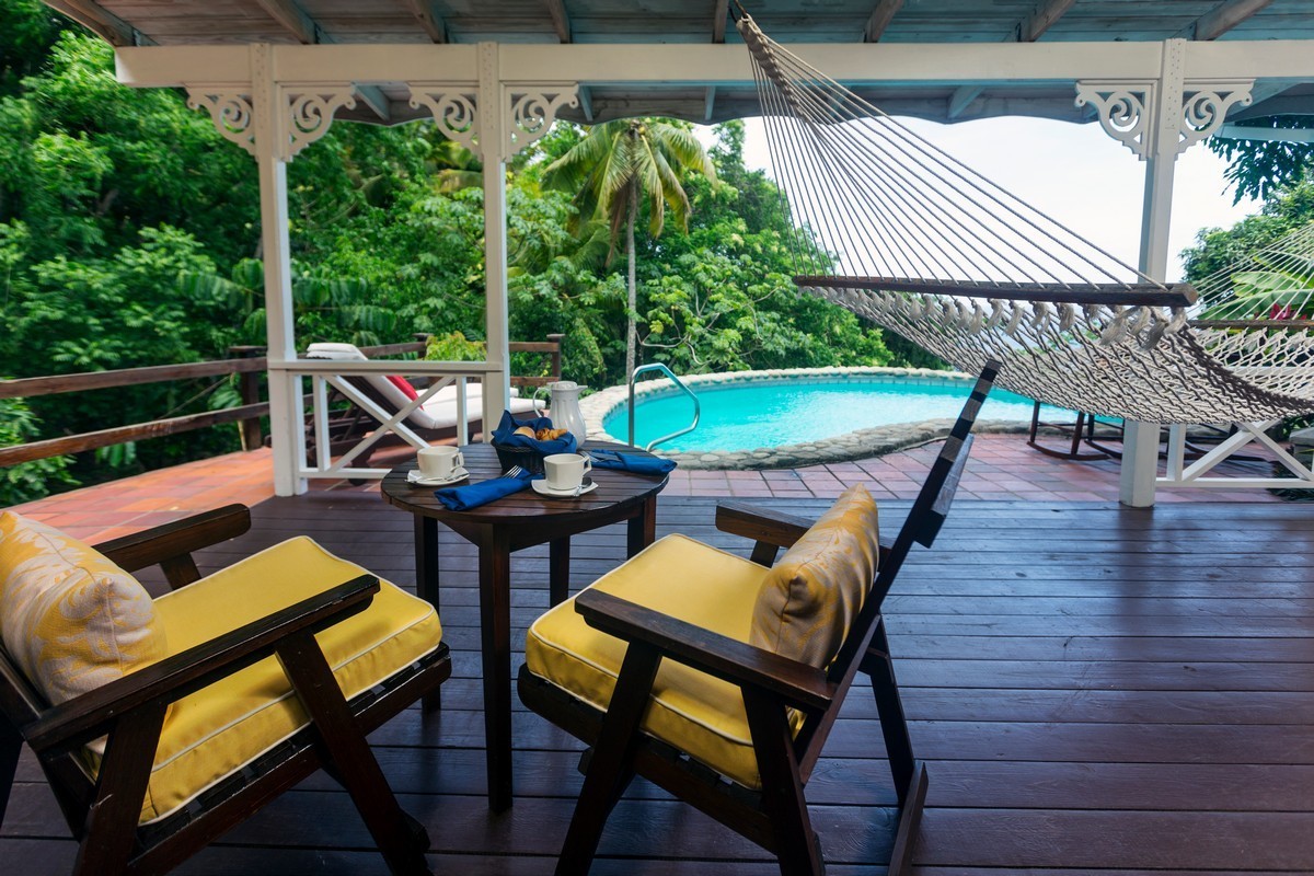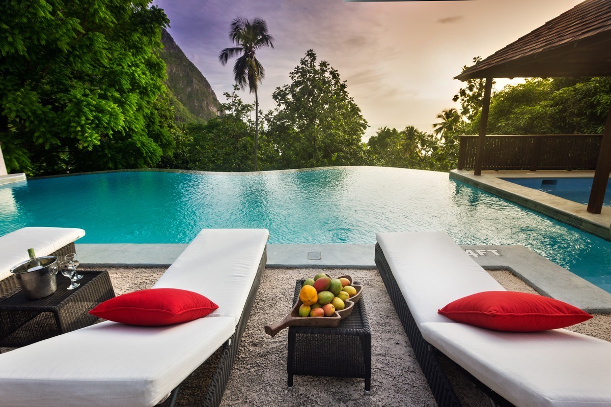 « Des villas indépendantes avec piscines privatives et vues spectaculaires sur la mer des Caraïbes et le Piton... »