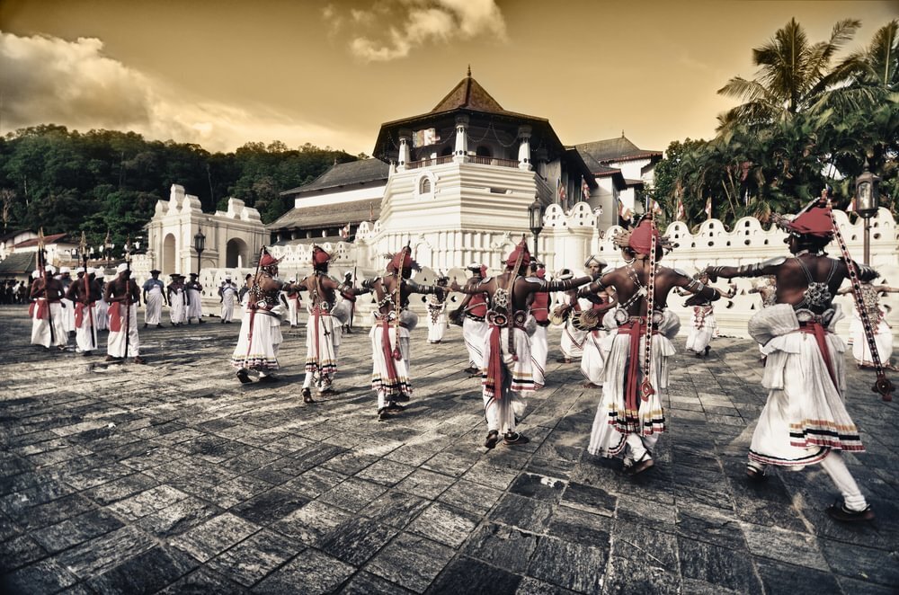 Après le petit déjeuner matinal, direction Dambulla, ses fresques rupestres, inscrit au patrimoine mondial de l'Unesco, datant du 1er siècle av. J.C. Ce temple renferme cinq grottes sanctuaires entièrement ornées de peintures murales et sculptures racontant les grands épisodes de la vie de Bouddha... Route vers Kandy. Kandy fut la dernière capitale du royaume, accueillant au XVIe siècle la fameuse relique de la Dent de Bouddha dans un temple élégant, le Dalada Maligawa. Il constitue, avec les Devala, les sanctuaires des quatre dieux gardiens de la relique, un ensemble sacré que l’Unesco a inscrit au Patrimoine de l’Humanité. Dans l'après-midi visite de la ville et son marché riche en couleurs et en odeurs, ateliers de pierres précieuses avec ses saphirs et rubis. En fin de journé, spectacle de danses traditionnelles kandyennes avec la célébre marche sur le feu puis découverte du temple de la Dent sacrée de Bouddha pour assister à la cérémonie du soir. Installation à l'hôtel.