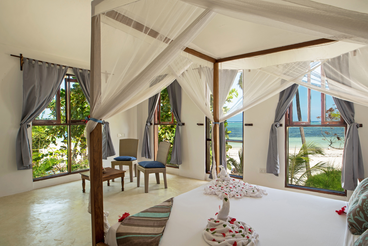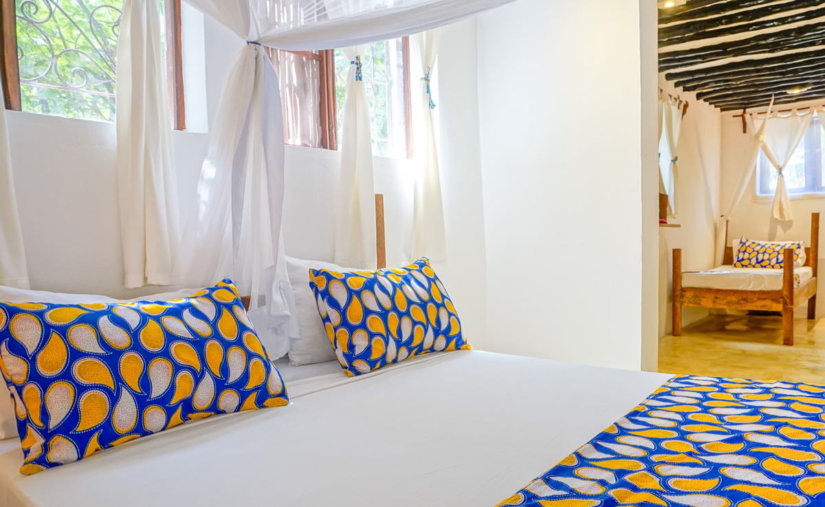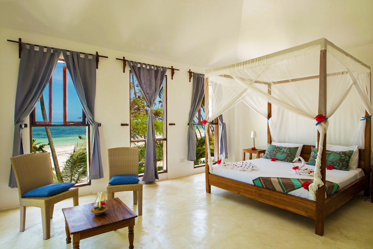 Toutes les chambres disposent de : 1 salon "Baraza", 1 lit double queen, un ventilateur de plafond, un coffre-fort.