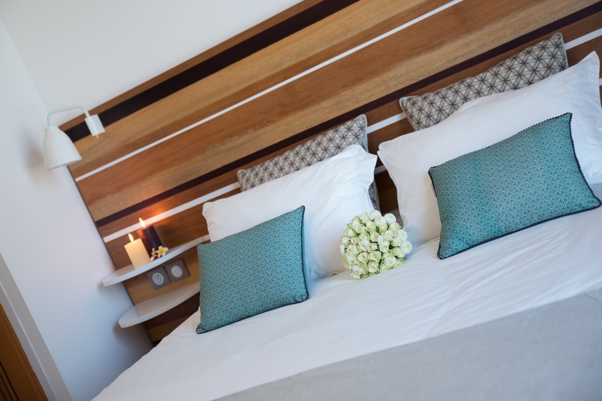 - Une chambre à la décoration simple, située côté mer, avec une petite terrasse de 5 m² vue mer