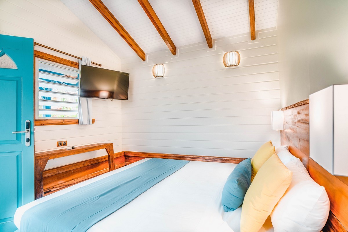 Au coeur d'un beau jardin tropical, l'hôtel Bambou dispose de 153 chambres standard et familiales aux couleurs créoles vives, réparties en bungalows et dans la maison Gran Kay. Elles allient à la fois modernité, confort et décoration exotique.