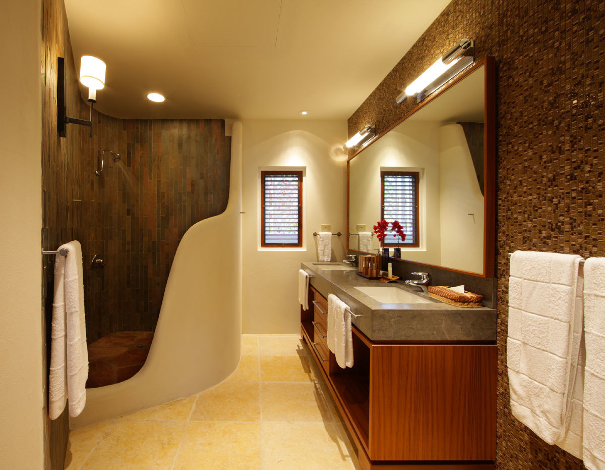 Elle est dotée de la climatisation, d'un jacuzzi, d'une piscine à débordement, d'une douche extérieure et d'un esppace privé pour dîner.