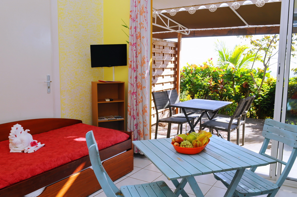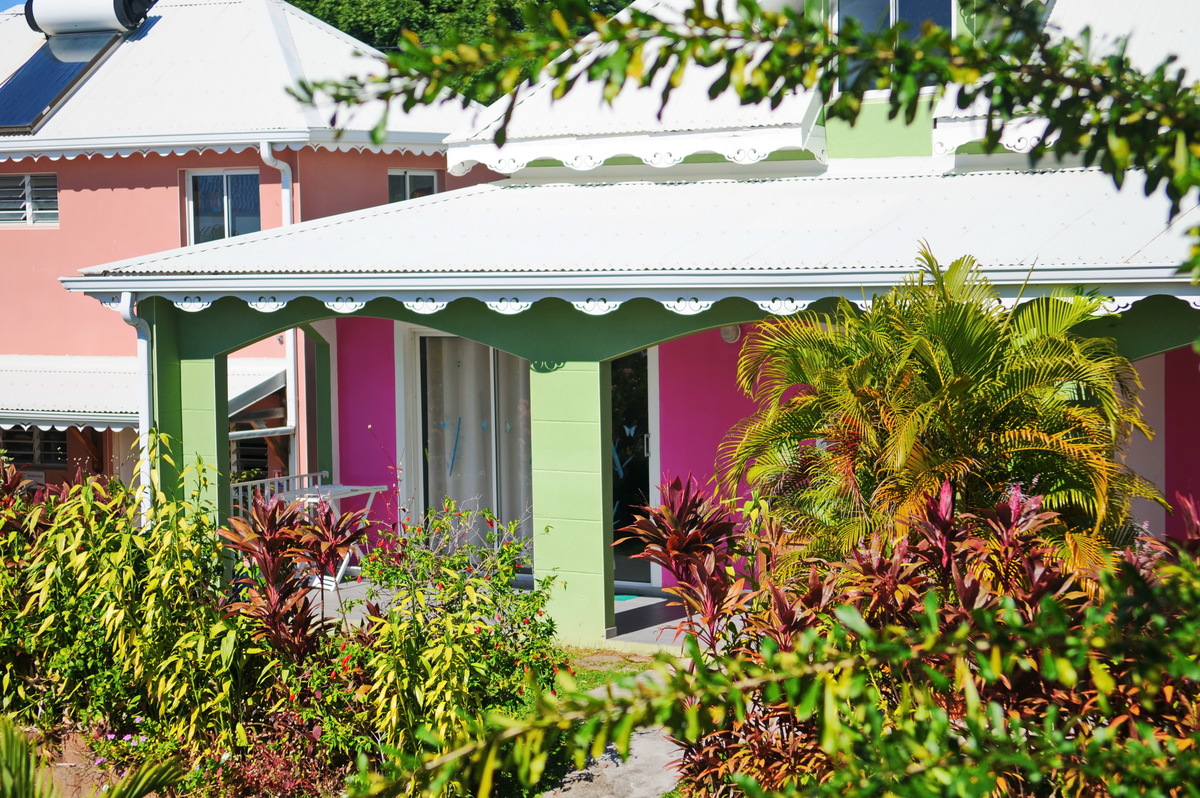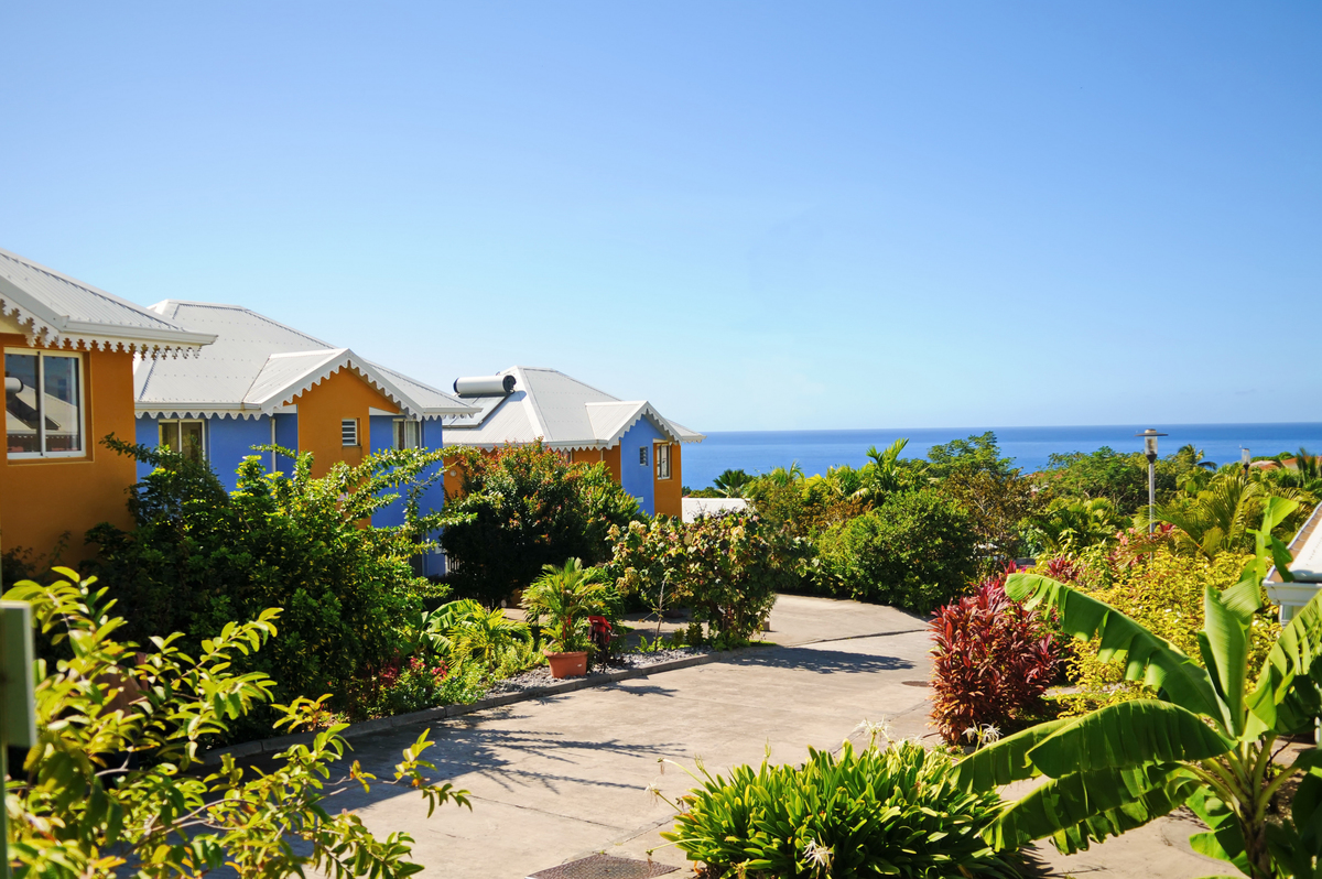 Le Village Pomme Cannelle dispose de 21 studios et appartements répartis dans de petites résidences colorées d’un étage, qui bénéficient d'une vue imprenable sur la Montagne Pelée d'un côté et sur la mer des Caraîbes de l'autre.