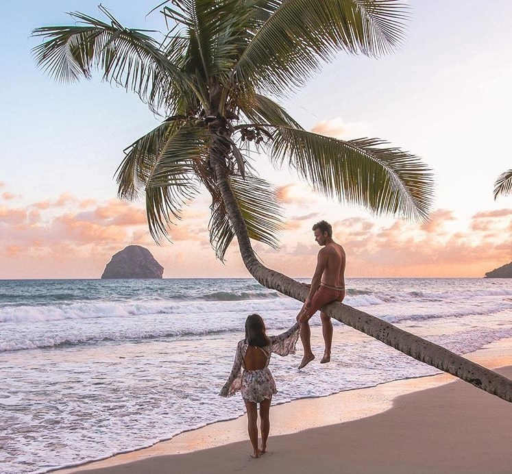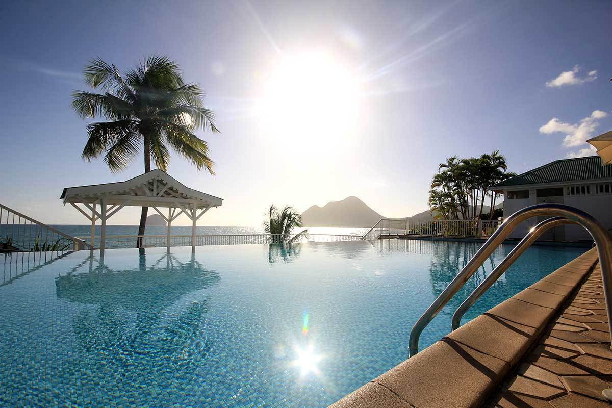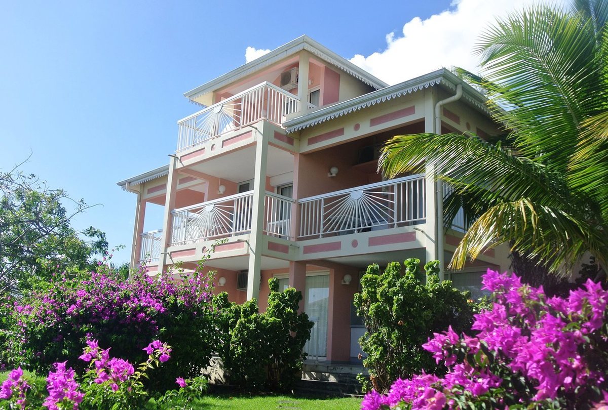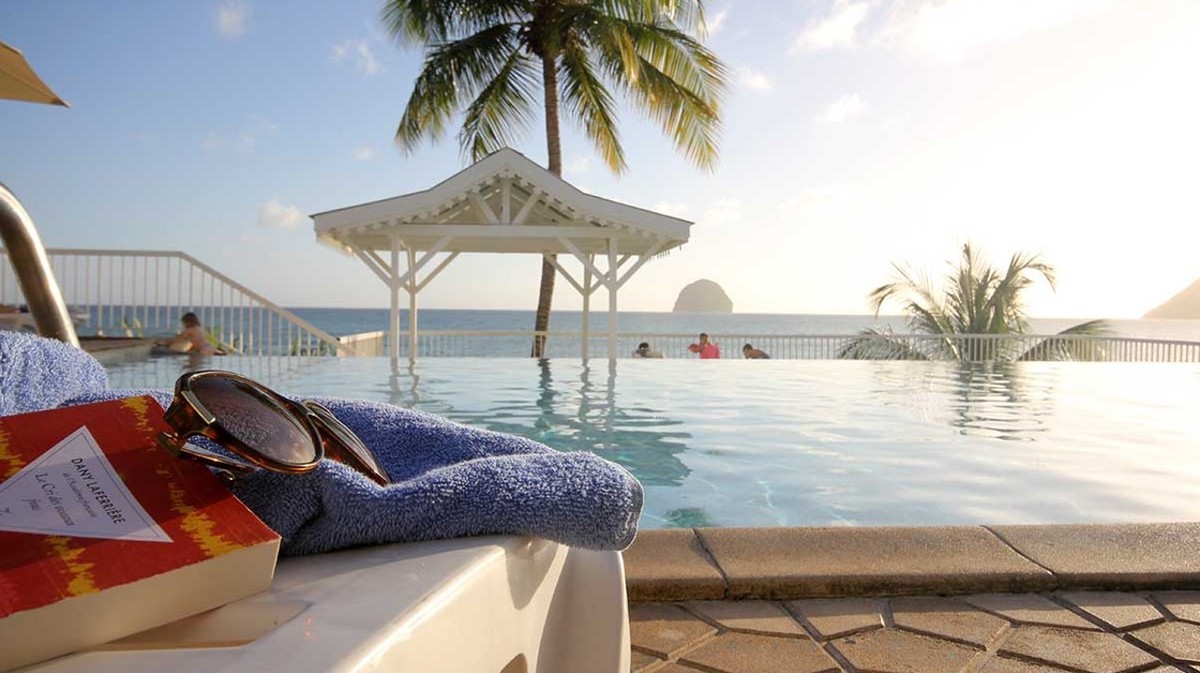 « Niché entre cocotiers, hibiscus, amandiers et bougainvilliers, découvrez ce petit bijou de simplicité qui offre une vue imprenable sur le célèbre rocher du Diamant. »