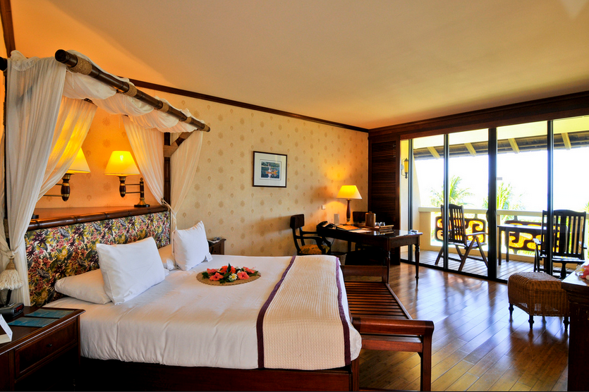 La plus grande chambre de l'hôtel, de style polynésien élégant, équipée d'1 lit king size, une salle de bain avec baignoire et douche, un salon, ainsi qu’un bar privé.