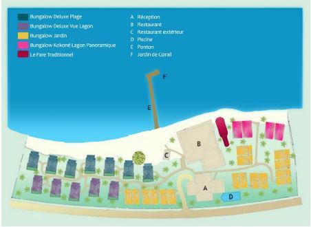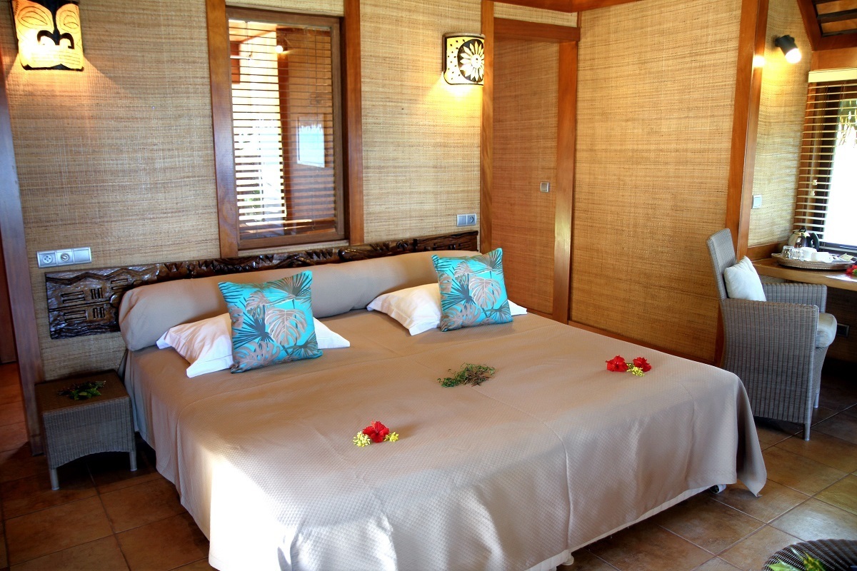 Le Mahana vous propose 33 Bungalows au style polynésien orientés jardin ou mer.