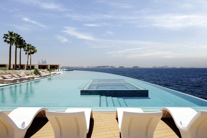 - 4 piscines, dont un bassin séparé pour les enfants ( 2 piscines couvertes avec vue panoramique sur Dubaï, 1 piscine d'eau salée)