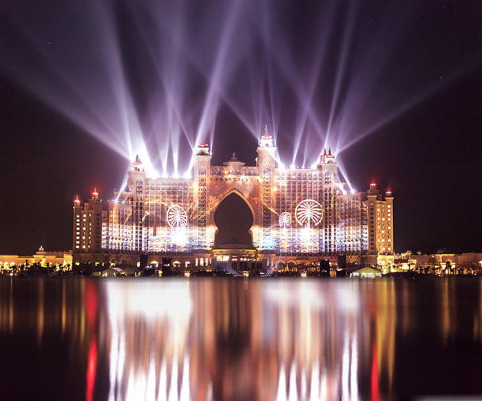 A l'extrémité de l'île artificielle de Palm Jumeirah, la Palme, un extraordinaire resort signé Sol Kerzner recrée l'univers de la mystérieuse cité de l'Atlantide.