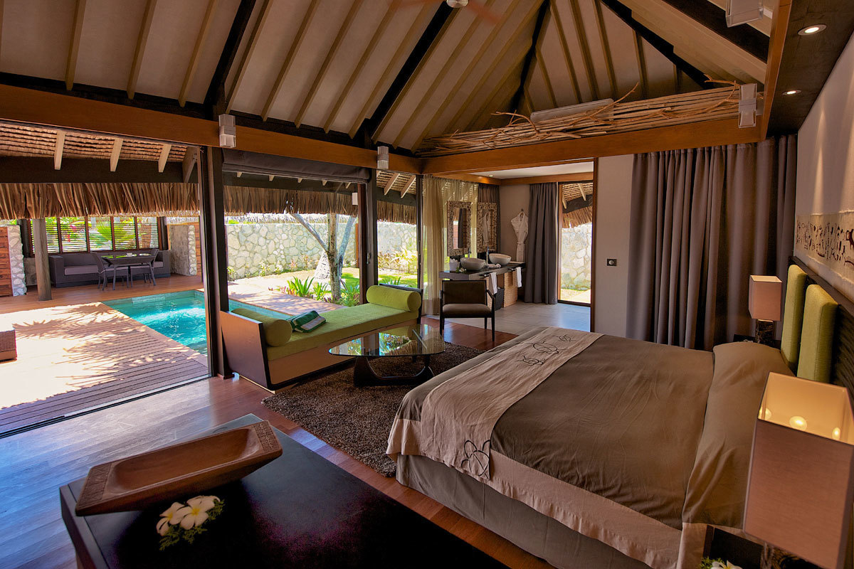 Avec une décoration luxueuse et raffinée. Ils sont équipés d'un lit king size, un canapé, un bureau et plusieur caissons de rangement, terrasse surplombant la plage, baignoire à ciel ouvert et un jardin avec des plantes tropicales. Ils possèdent une piscine à nage à contre-courant.