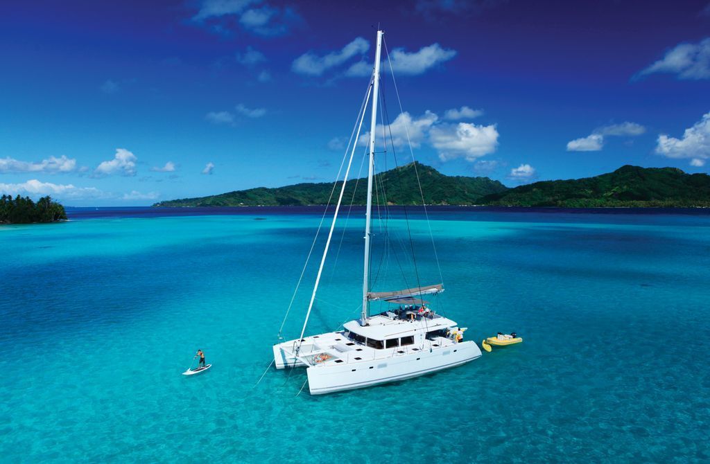 « Profitez de votre catamaran avec équipage lors d'une croisière privée entre Huahine, Tahaa et Bora Bora »