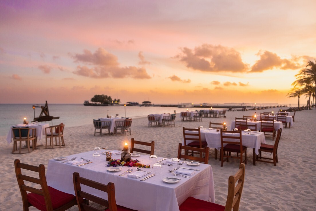 - Le restaurant The Beach (classiques français ; touche locale (maldivienne) ; fruits de mer frais locaux ; plats végétariens).