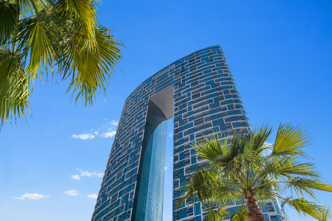 The Address Beach Resort dispose de 217 chambres et suites, réparties dans l'une des 2 tours culminant à 310 mètres de hauteurs situées entre le 3ème et 16ème étages ascenseur
