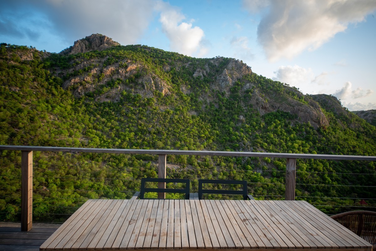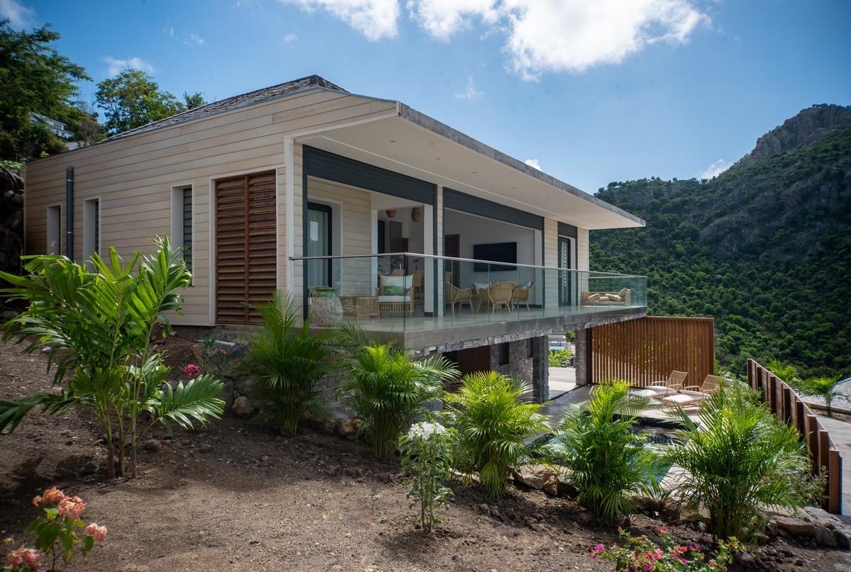 « Perché dans les montagnes de Petite Saline, le domaine de Sweet Hill dispose de 2 prestigieux studios et 4 villas haut de gamme avec piscine privée. Il bénéficie d'un environnement exceptionnel, avec notamment une vue panoramique entre mer et montagnes. »