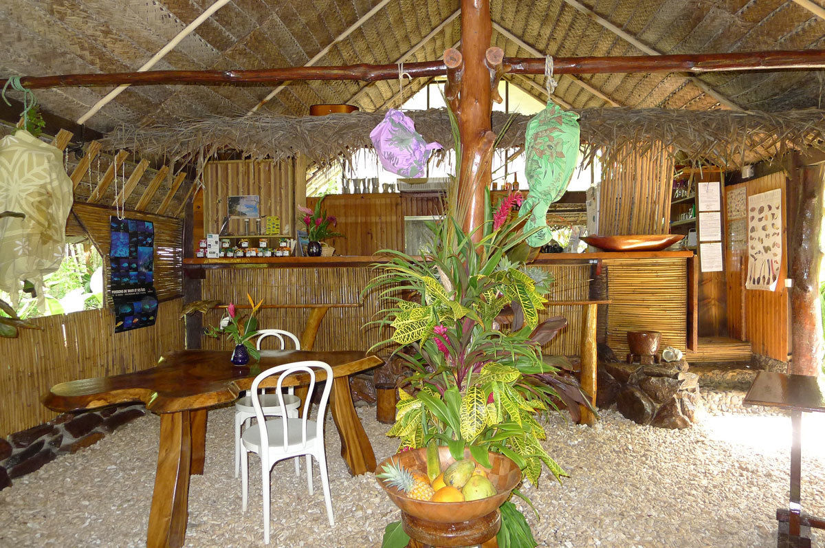 Bungalow typique polynésien avec toit en pandanus et une belle décoration faite à partir de produits locaux par des artisans locaux : coquillages, coraux, bambous, bois local, feuilles de bananier, palmes de cocotiers...Ce bungalow confortable est situé dans le jardin tropical et offre une vue sur la baie de Bourayne. Le lagon n'est qu'à quelques pas du bungalow et vous pourrez chaque jour admirer le coucher de soleil de votre terrasse.