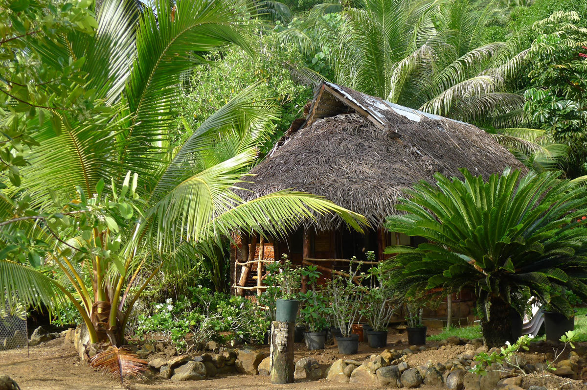 Les bungalows sont spacieux et dotés d'une mezzanine pouvant ainsi loger jusqu'à 5 personnes. Décorés avec des matériaux locaux : coquillages, bambou, corail, bois local, feuilles de bananiers etc...vous aimerez également la salle de bain agrémentée de pierres et de meubles en bois. Même si la pension ne bénéficie pas d'une plage de sable blanc et d'un lagon bleu turqoise, ces bungalows offrent une jolie vue sur la baie et vous apprécierez les couchers de soleil depuis votre terrasse.